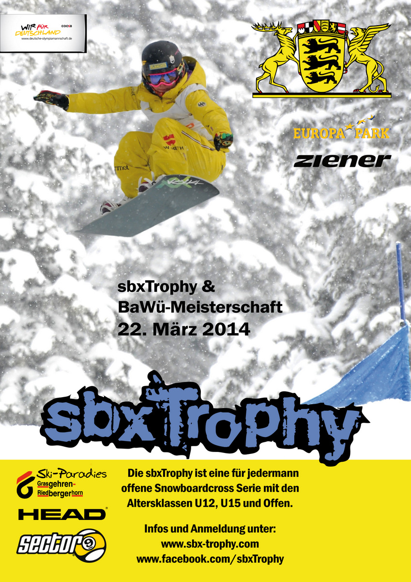 Daher: BaWü-Meisterschaft am 22.03.2014 und gleich am nächsten Tag die Bayerische Meisterschaft am 23.03.2014. Alles in Grasgehren und alles im Rahmen der sbxTrophy von Snowboard Germany.